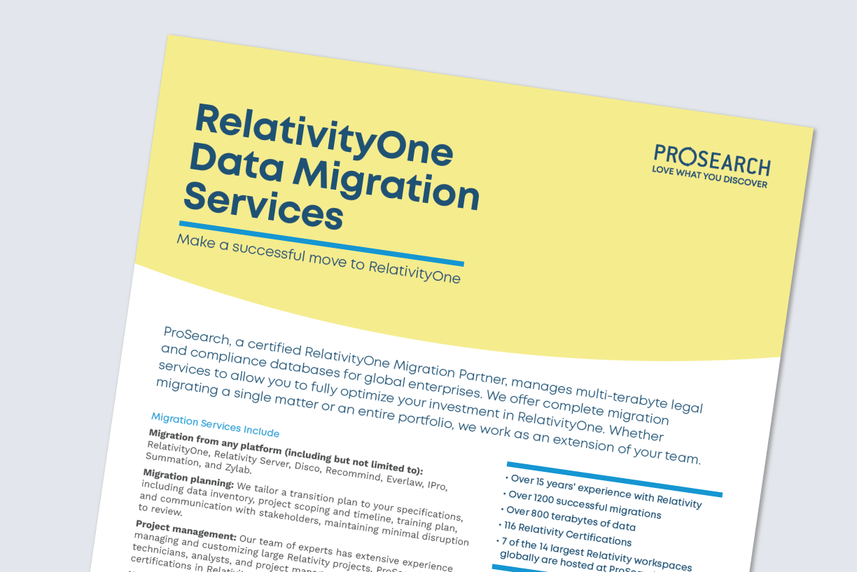 Migrating to RelativityOne is a mission-critical transition, one that demands an expert’s touch. ProSearch leads the industry in experience.