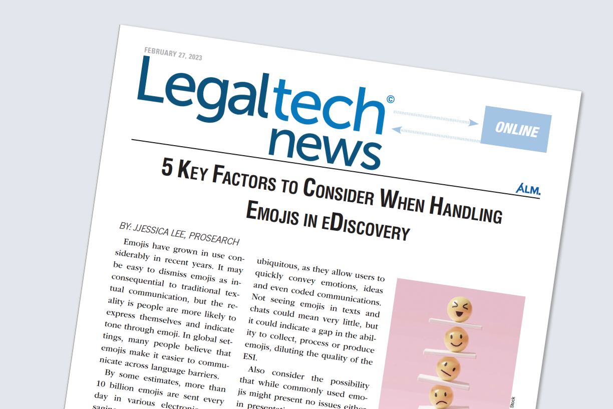 5 Key Factors to Consider When Handling Emojis in eDiscoveryJessica Lee2023-03-10T00:25:53+00:00March 10, 2023|Articles|Read More