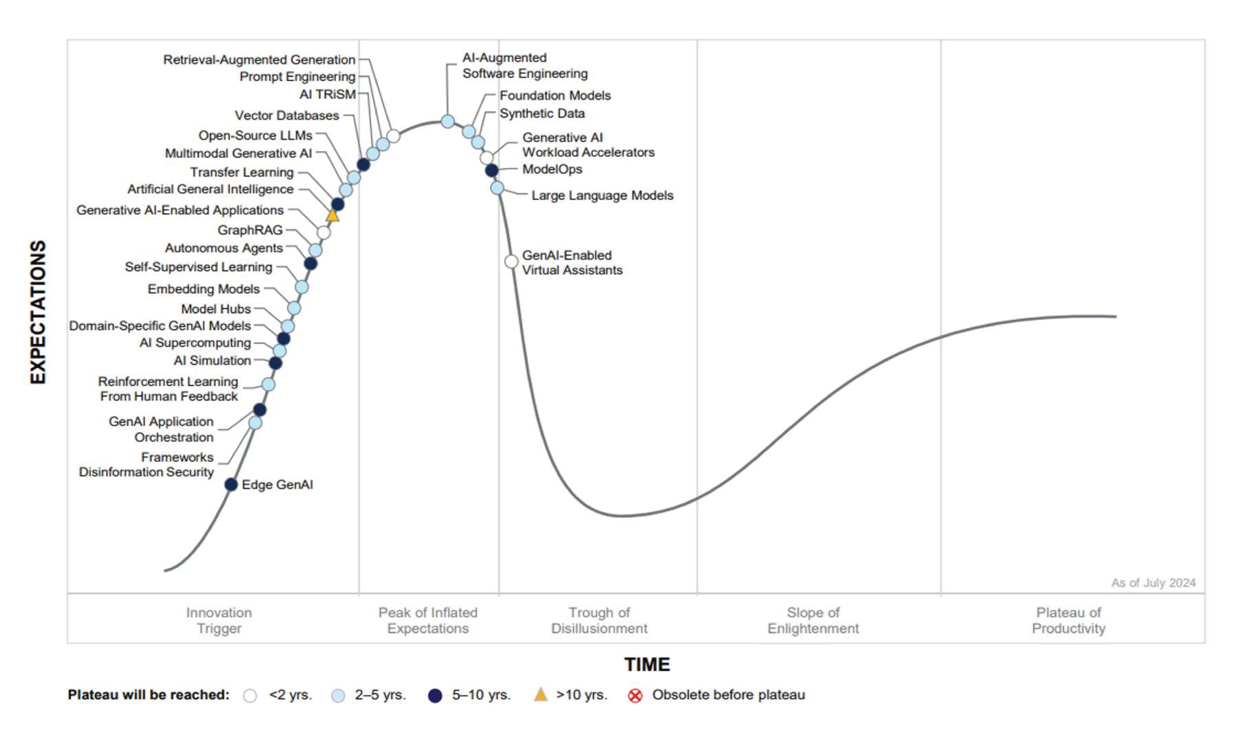 According to Gartner, LLMs are placed past the Peak of Inflated Expectations[5]. It has been released to the public long enough for them to understand its limitations. Hallucinations are the famous example. However, there are issues with costs of ownership and data governance. These roadblocks of reality are dampening the excitement that was made when LLMs were first unveiled a few years ago.